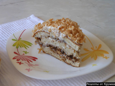 Теперь приготовления закончены и можно начинать сборку торта - выкладываем слой смоченных в сметане пряников, затем слой бананов, затем ореховая крошка. Повторяем слои до тех пор, пока не закончатся продукты. Последним идет пряничный слой.