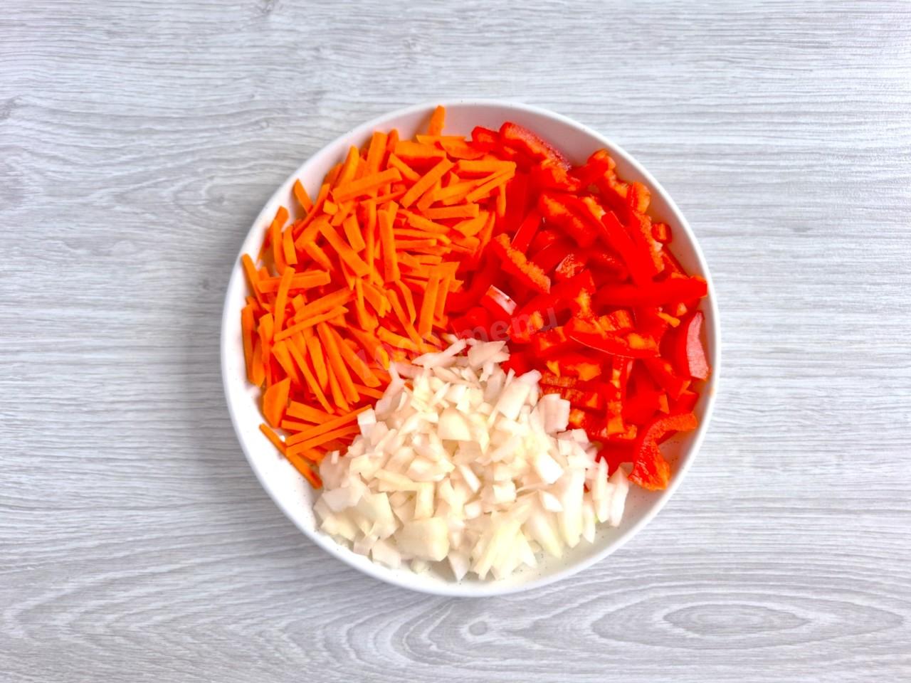 Шаг 2. Как подготовить лук, морковь и болгарский перец?