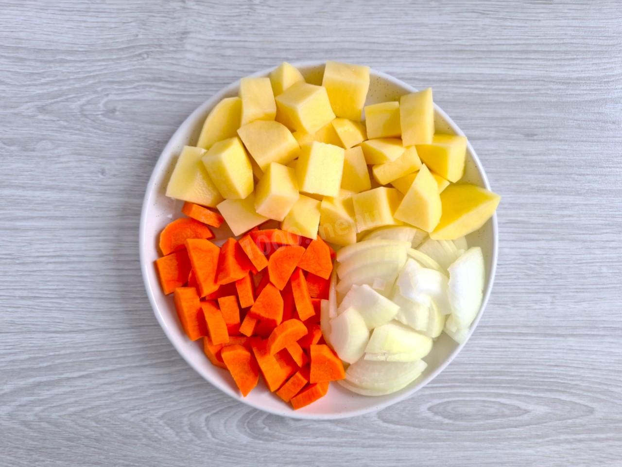 Шаг 3. Как подготовить картошку, морковь и лук?