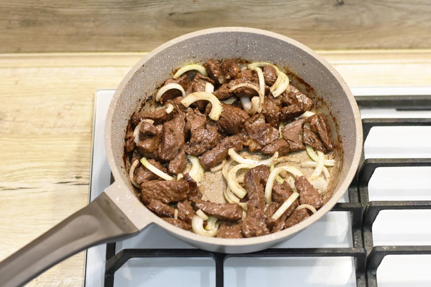 Шаг 4. Как обжарить лук с мясом?