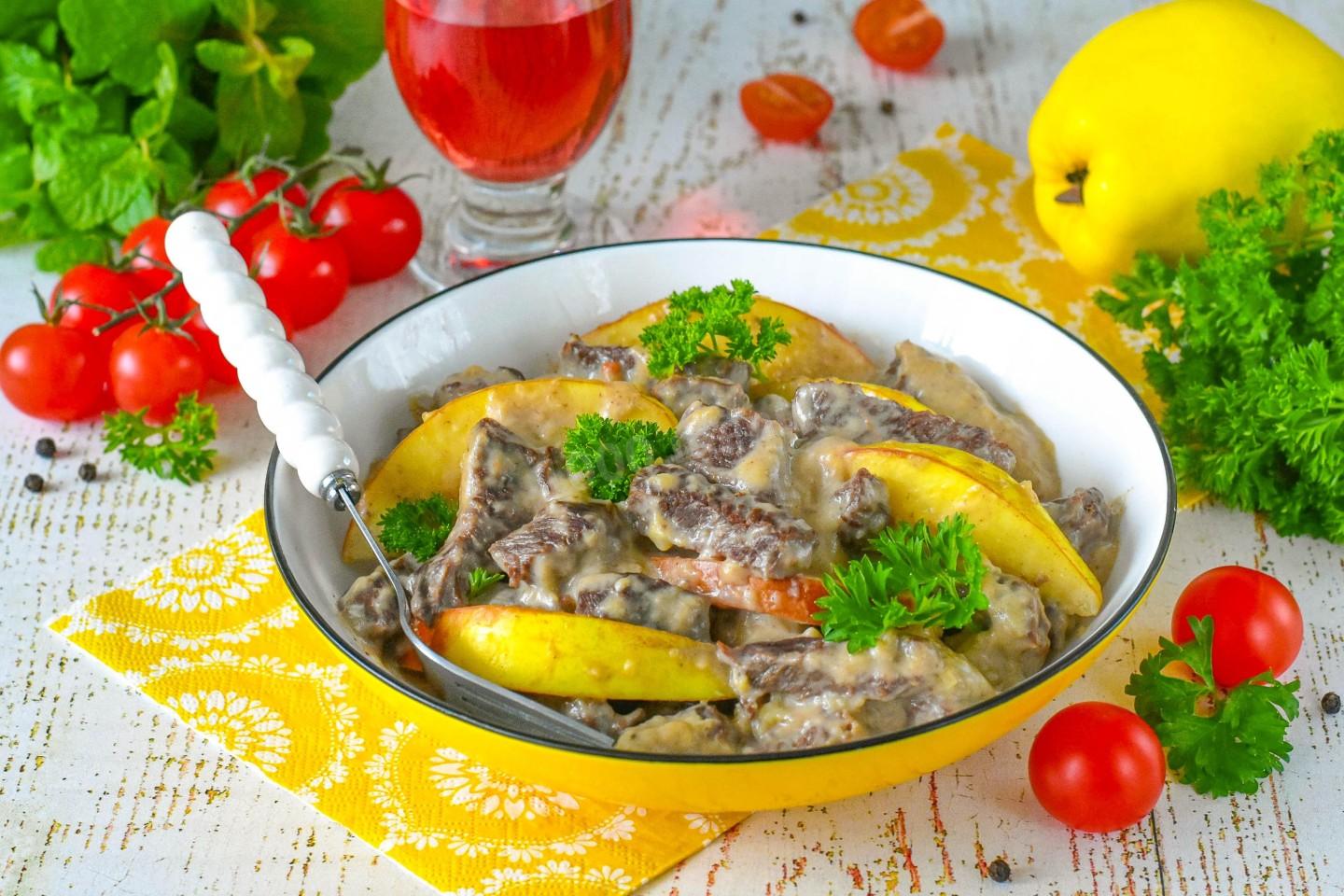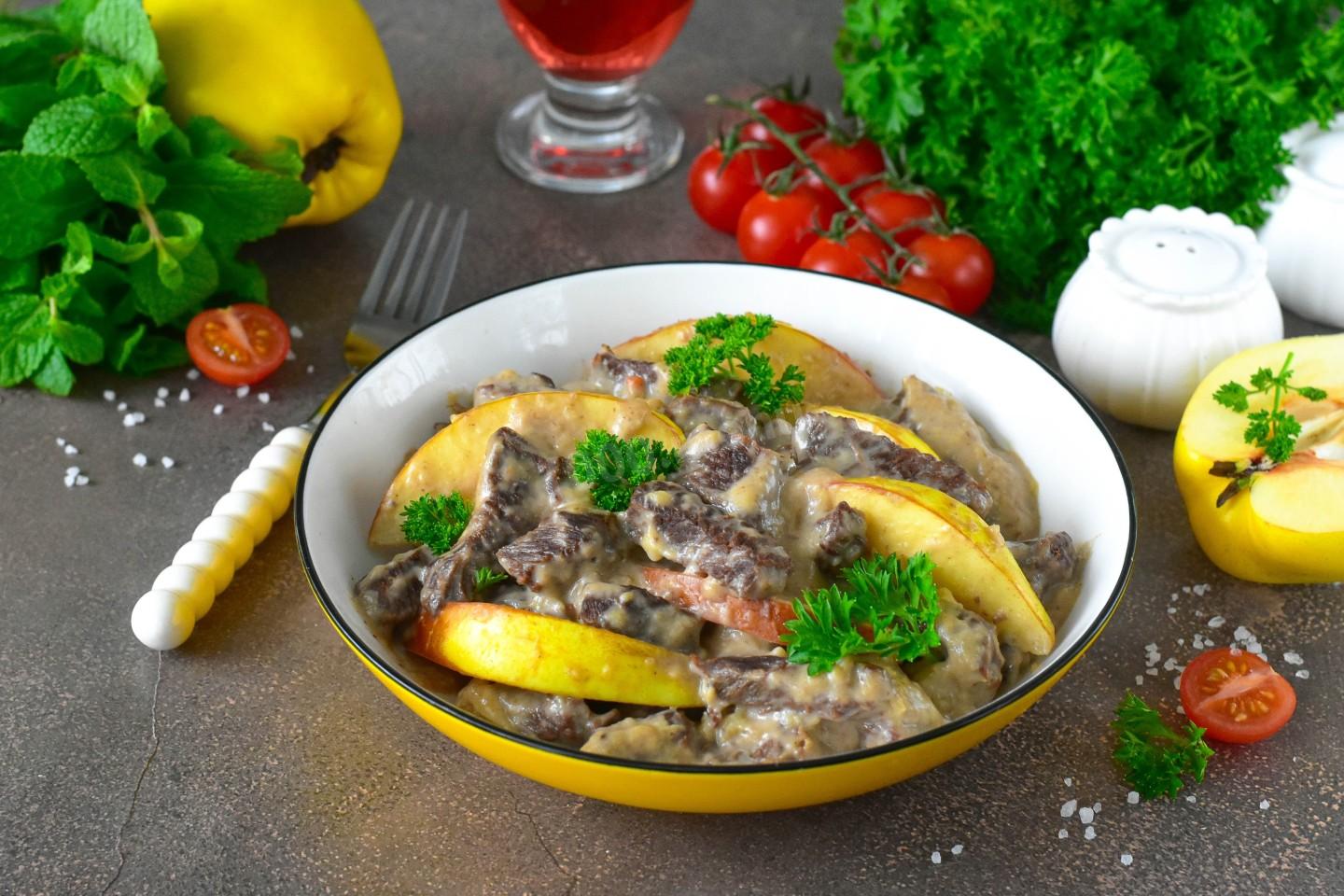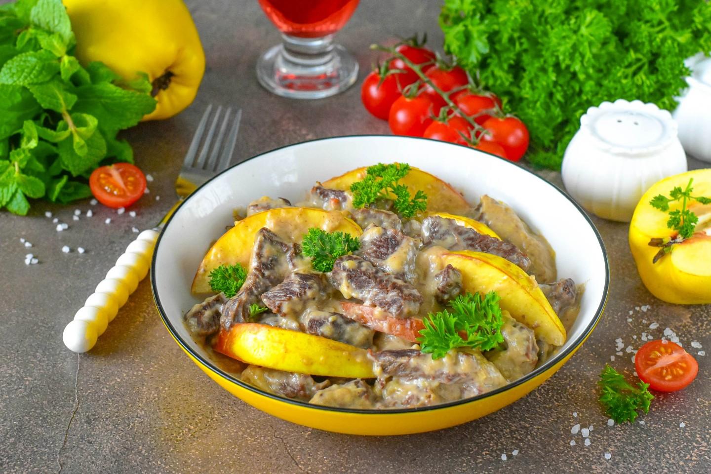 Говядина с айвой тушеная — это источник качественного белка и железа из мяса, а айва богата витаминами и пектином, который полезен для пищеварения. Тушение — один из самых щадящих способов готовки, сохраняющий питательные вещества. Сочетание мяса и фруктов отлично усваивается и дарит длительное чувство сытости.