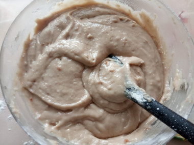 Порциями всыпайте муку и замешивайте однородное тесто. Дайте ему немного постоять - минут 15. Муки у вас может уйти больше или меньше, это зависит от ее свойств. Тесто должно получиться как густая сметана. Тем временем разогрейте духовку до 180 градусов.
