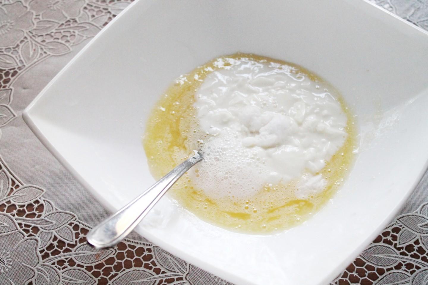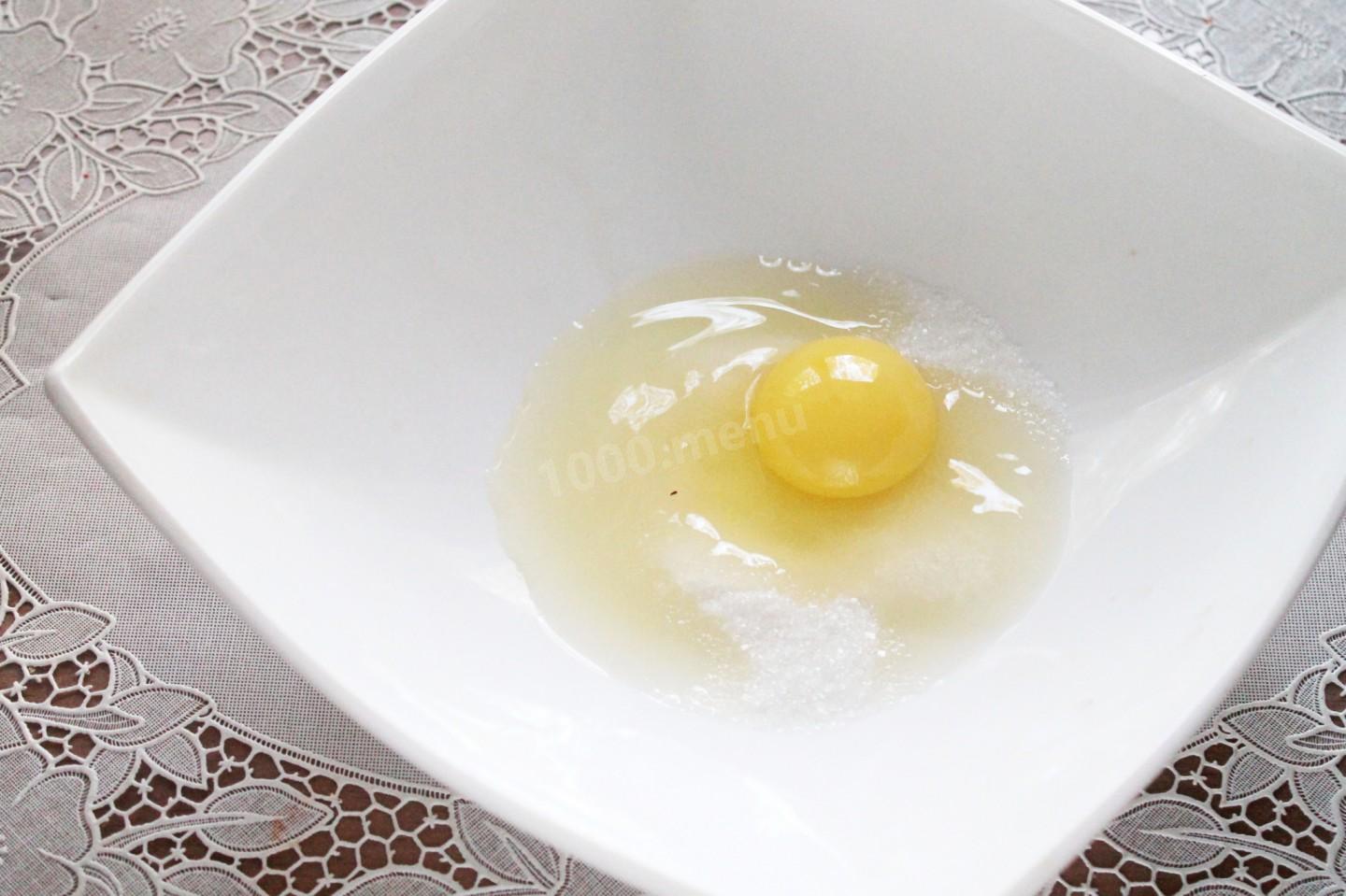 В отдельной миске смешайте яйцо с сахаром и хорошо взбейте вилкой.