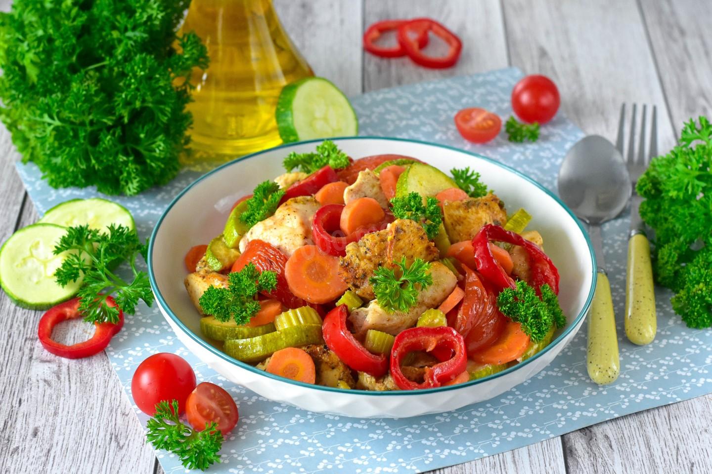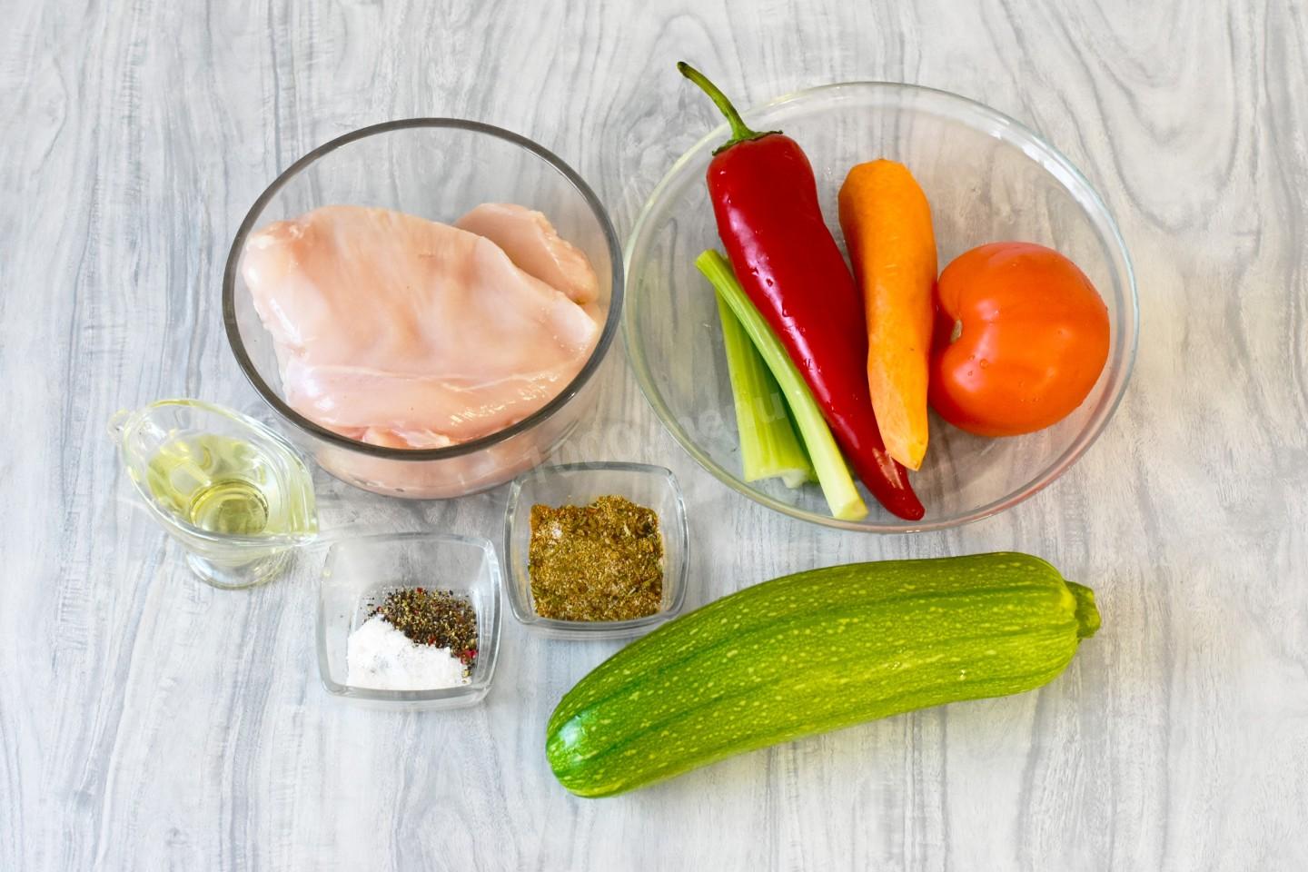 Этот рецепт курицы с овощами в аэрогриле – воплощение здорового питания. Нежное куриное филе служит источником белка, а кабачки, перец и сельдерей насыщают организм клетчаткой и витаминами. Приготовление с минимальным количеством масла делает блюдо низкокалорийным, идеальным для легкого ужина или диетического рациона.