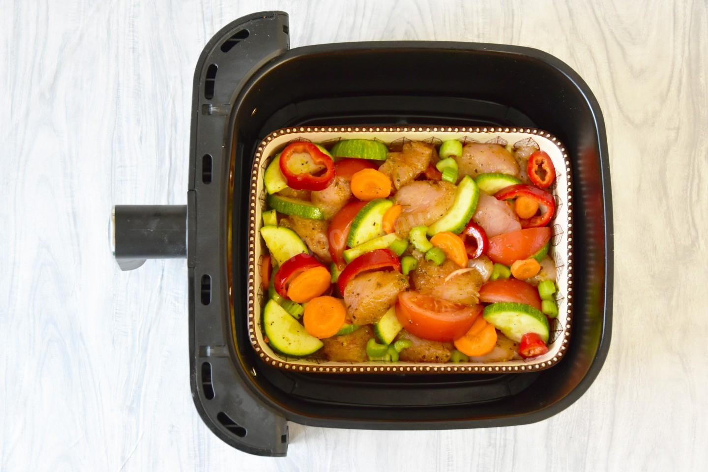 Шаг 4. Сколько готовить курицу с овощами в аэрогриле?