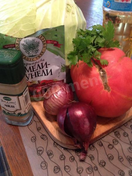 Как сделать Капуста жареная с томатным пюре и чесноком?Ингредиенты
