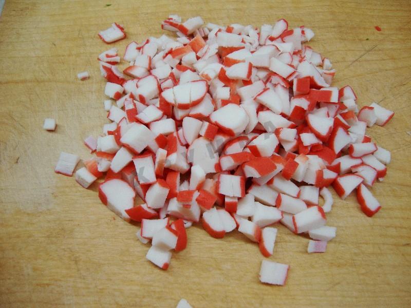 Крабовые палочки нарезать кубиками