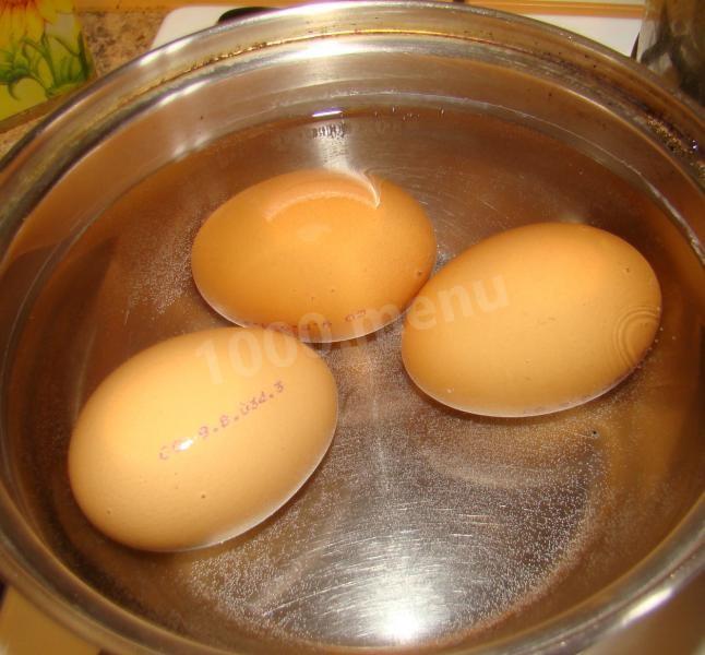 Яйца вымойте и сварите вкрутую. Затем слейте воду и залейте холодной водой, дайте полностью остыть.