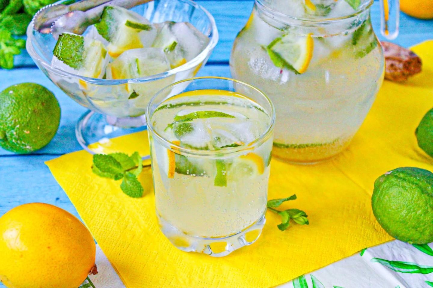 В графин или кувшин положите 2-3 дольки лимона или лайма, имбирную смесь и заполните до середины льдом. Залейте все газированной водой, перемешайте и сразу подавайте на стол. Приятного аппетита!
