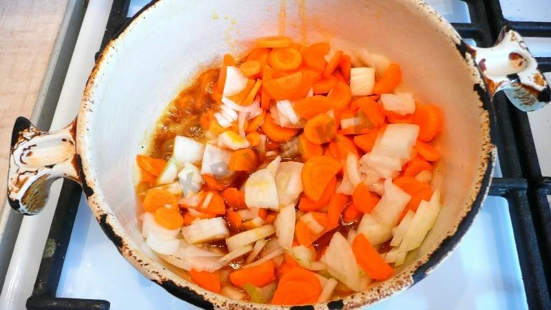 Затем отправьте туда нарезанные овощи и слегка обжарьте их.