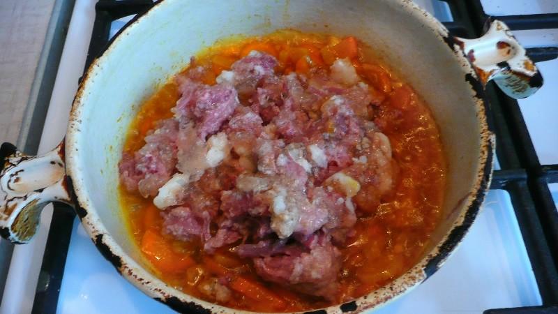 В последнюю очередь добавьте тушенку и прогрейте её.