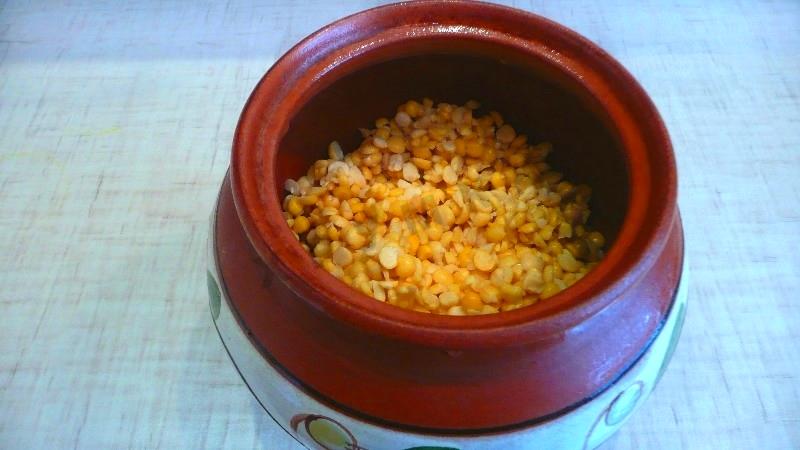 Как сделать гороховый суп с тушенкой в горшочке в духовке? Подготовьте все необходимые ингредиенты.