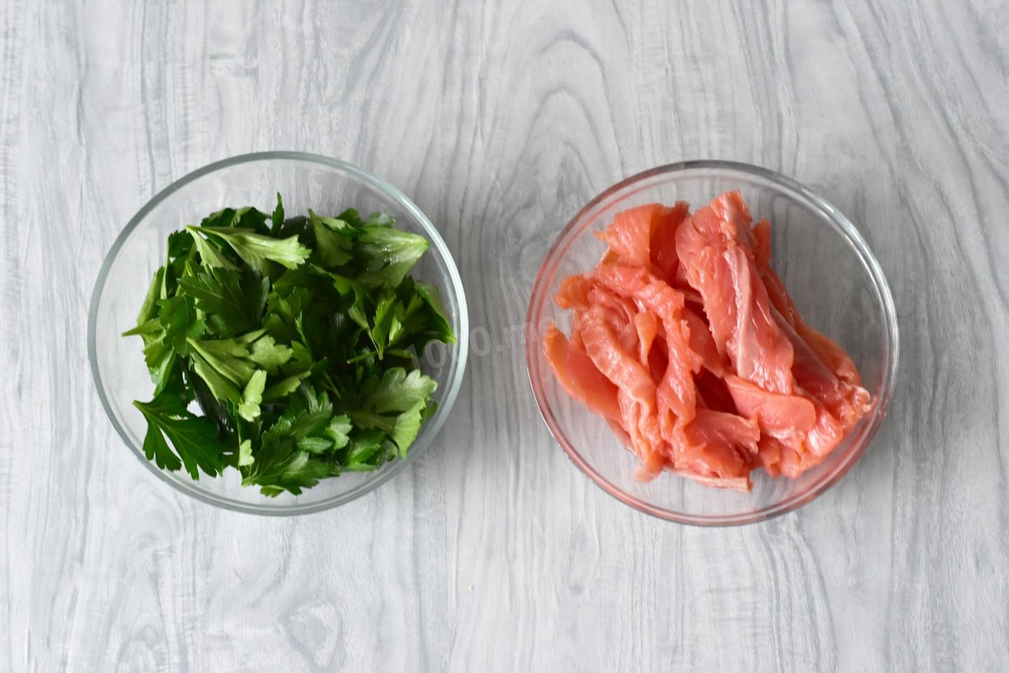 Шаг 8. Как подготовить красную рыбу и петрушку?