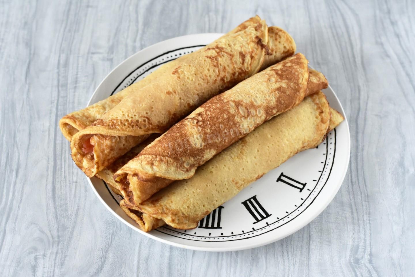 Как сложить блины рулетом? Положите блин начинкой вверх. Отступив от края 2-3 см (чтобы начинка не вылезала), начните плотно скручивать от себя, формируя тугой рулет. Главное — первый виток сделать плотно, тогда весь рулетик будет аккуратным. Рулетики выложите на тарелку, накройте пищевой пленкой и поставьте на 2 часа в холодильник.