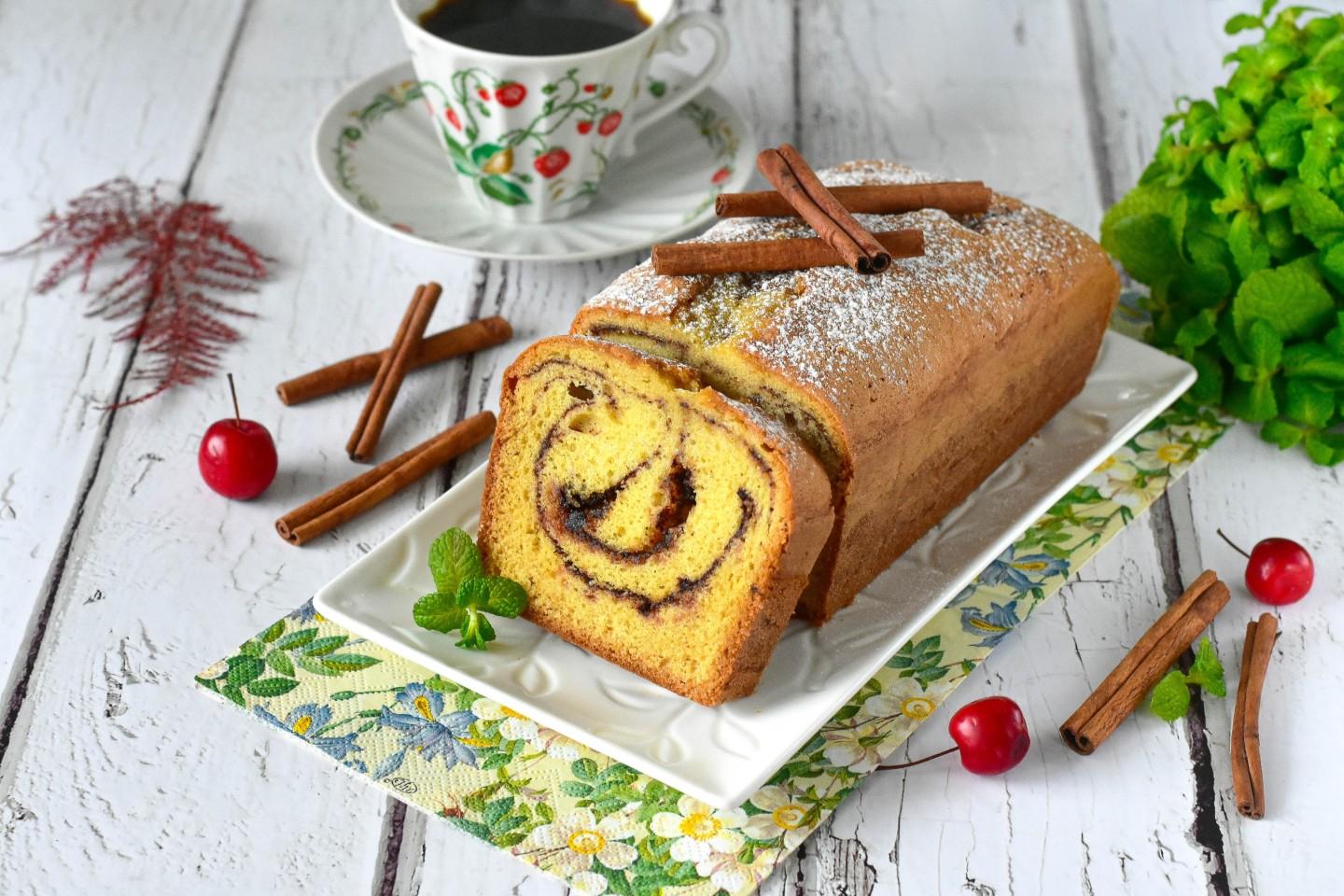 Подавайте кекс с корицей теплым или полностью остывшим, нарезанным на ломтики. Украсьте взбитыми сливками, шариком ванильного мороженого или просто посыпьте сахарной пудрой. Идеален к чаю, кофе или стакану холодного молока.