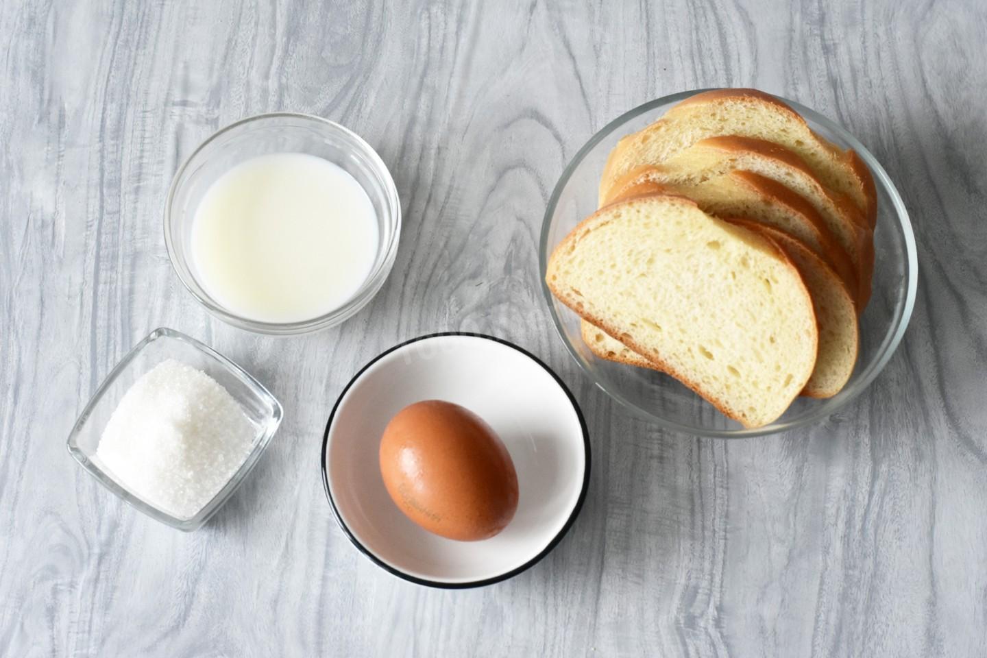 Для начала подготовьте все необходимые ингредиенты по списку. Тосты можно делать сладкие, как в этом рецепте, и соленые. В соленом варианте сахар замените на 1/2 ч. л. соли и любимые специи по вкусу. Можно вместо соли добавить универсальную приправу. Ориентируйтесь на свои предпочтения.