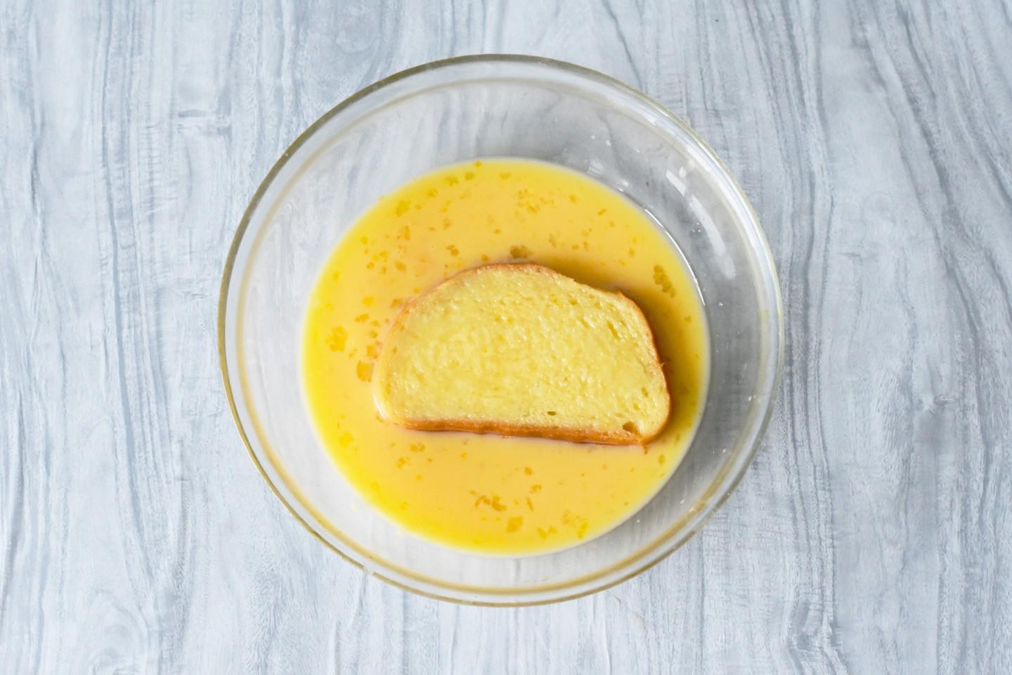 Дайте хлебу пропитаться кляром с каждой стороны не более 2-3 секунд. Если передержать, ломтик может стать слишком влажным и не прожариться внутри.