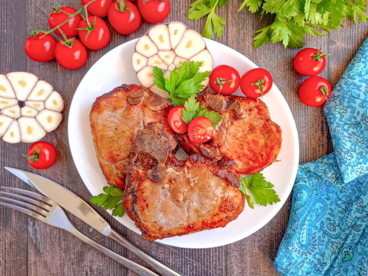 Свиные стейки: Берите вырезку, шею или карбонад. Подойдут и куриные бёдрышки или филе индейки (время приготовления уменьшится).