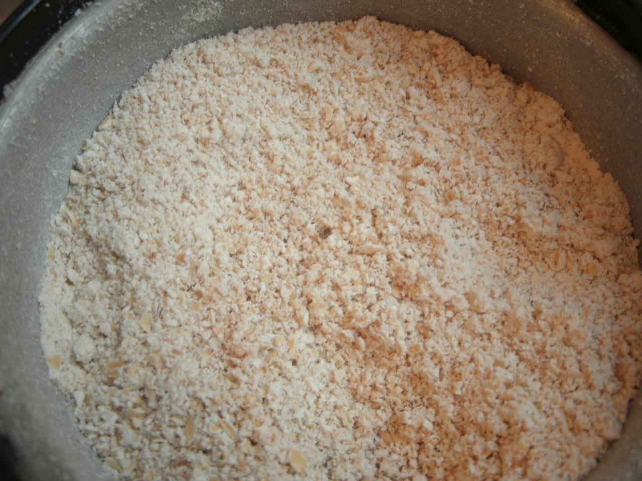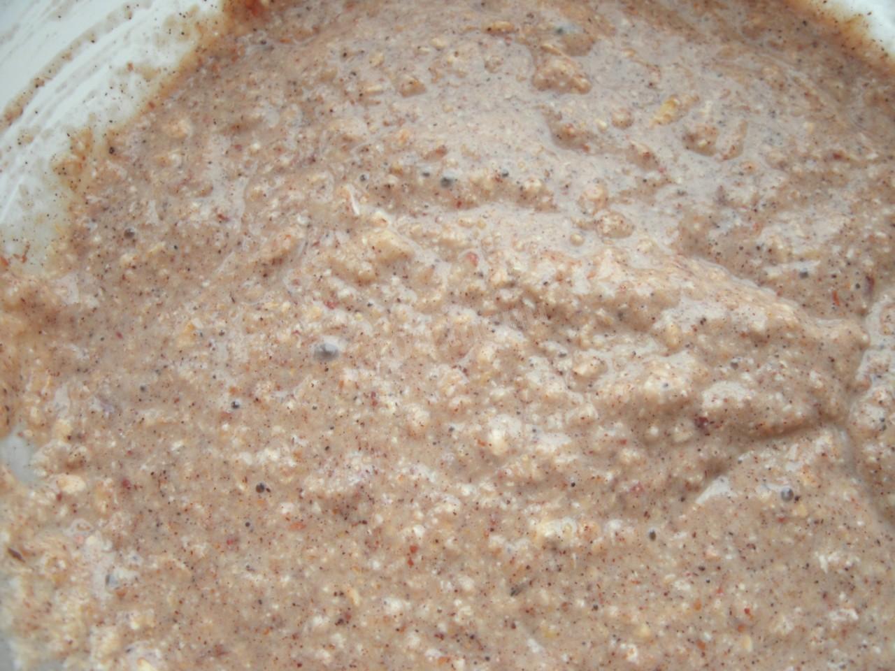Добавьте перемолотые хлопья в массу и перемешайте. Тесто по консистенции должно быть примерно как на оладьи. Оставьте готовое тесто для набухания минут на 40.