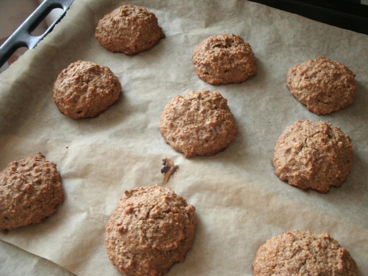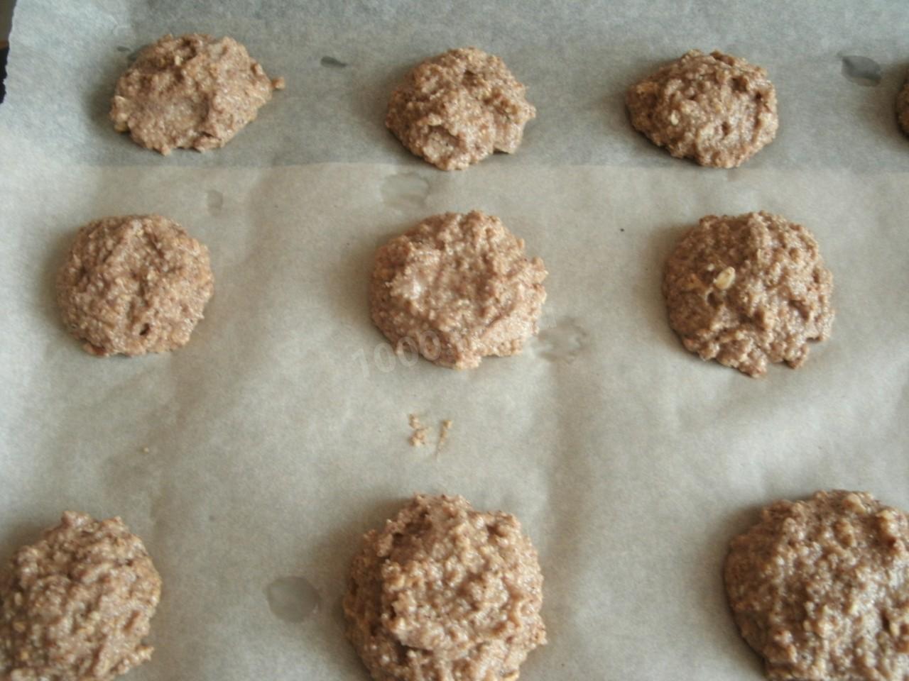 После загустения тесто должно быть как густая сметана. Для того чтобы печеньки получились мягкими и рассыпчатыми тесто не должно быть слишком густым. Выложите ложкой на лист, застеленный пергаментом, не разравнивая.