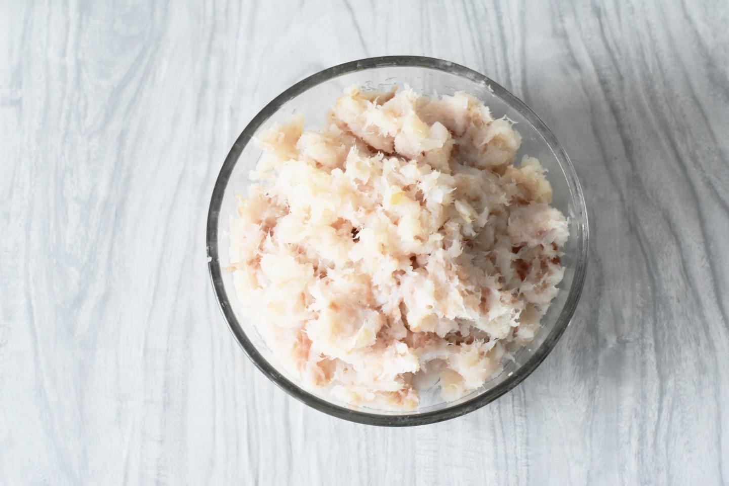 Рыбное филе прокрутите в мясорубке или измельчите в блендере. Можете также взять целую рыбу и разделать ее на филе. Как правильно разделать целую рыбу на филе? Удалите хвост, голову и плавники. Снимите с рыбы кожу. Вдоль хребта прорежьте тушку до позвоночника. Острым ножом срежьте мясо с хребтовой кости. Переверните тушку и срежьте филе с другой стороны. Получившиеся филе проверьте на наличие костей.