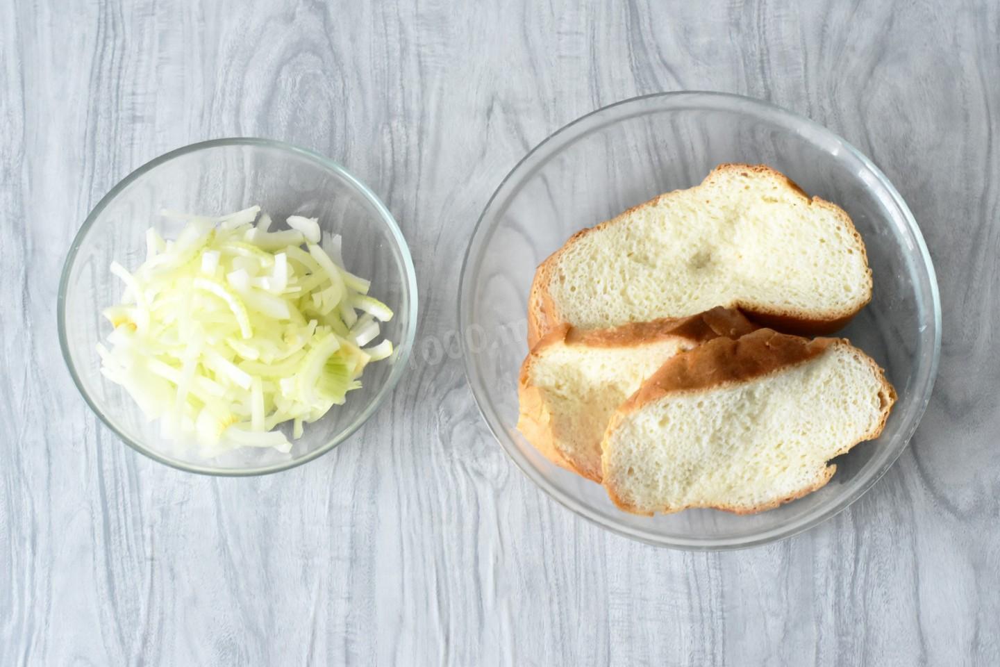 Шаг 3. Как замочить хлеб для фарша и нарезать и обжарить лук?