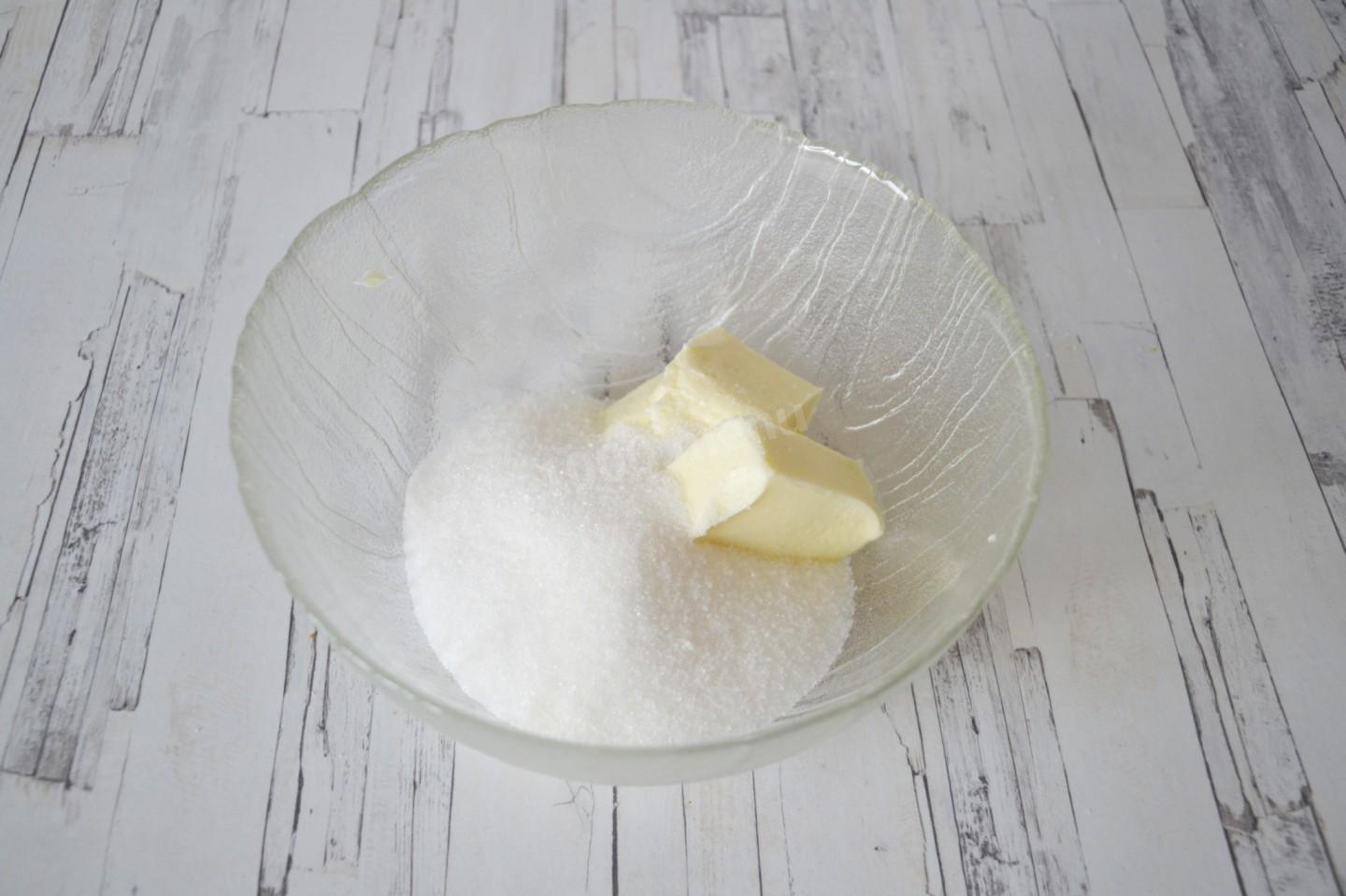 В глубокой миске соединить мягкое сливочное масло, сахар и ванилин. Все взбить.