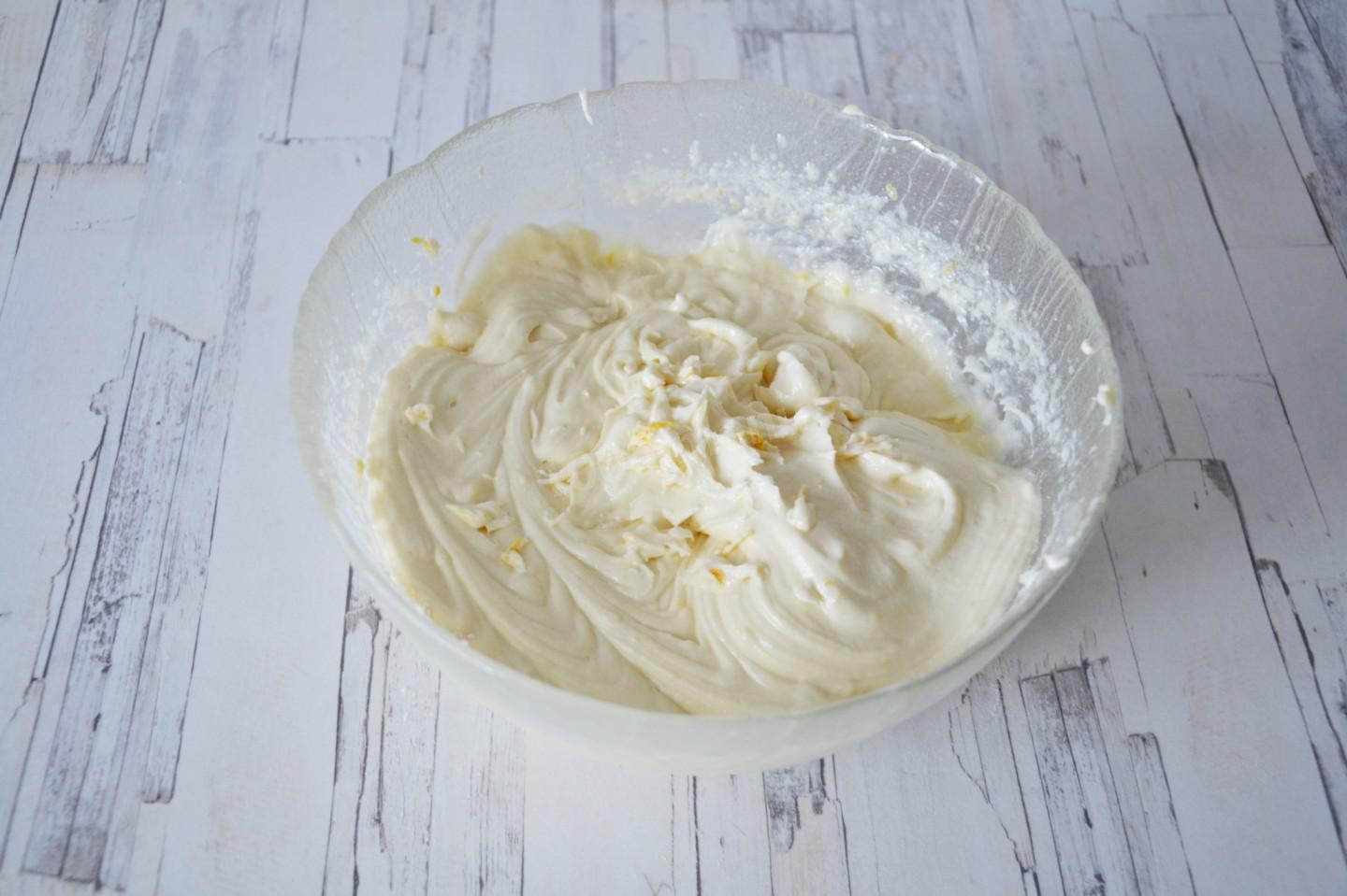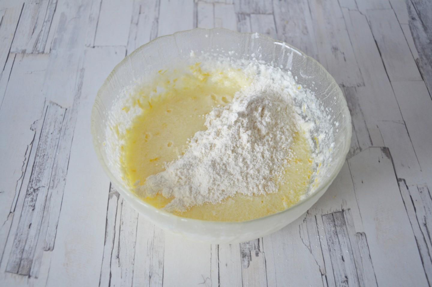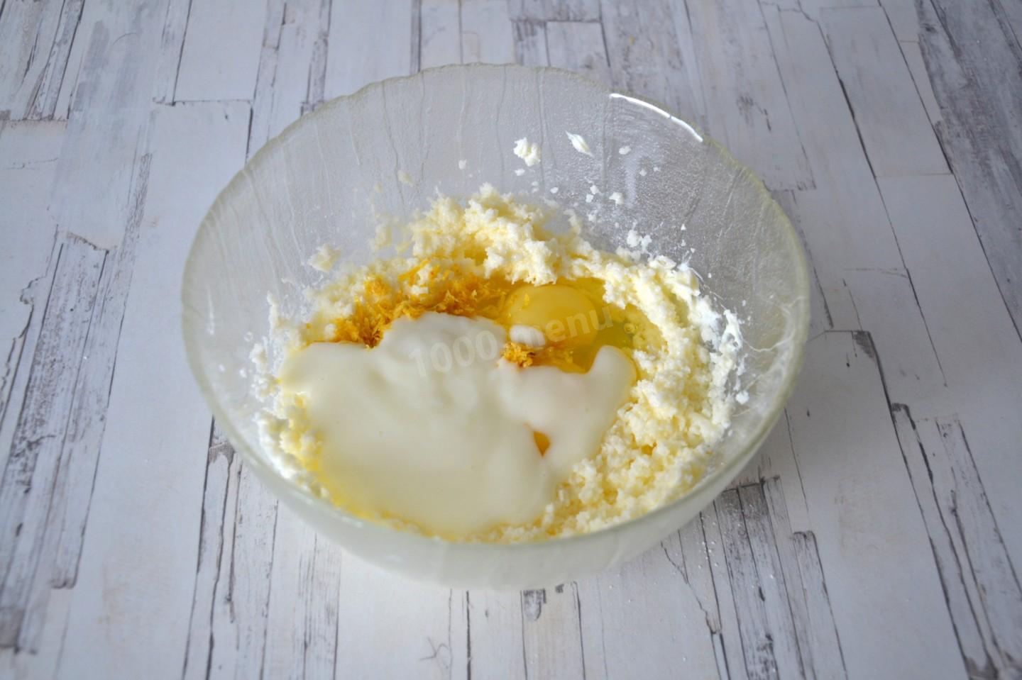 Добавить яйца, цедру лимона и йогурт и снова все тщательно взбить.