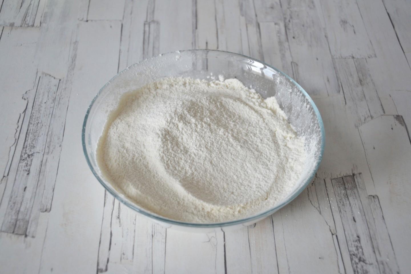 Муку просеять с разрыхлителем и содой и всыпать в тесто.