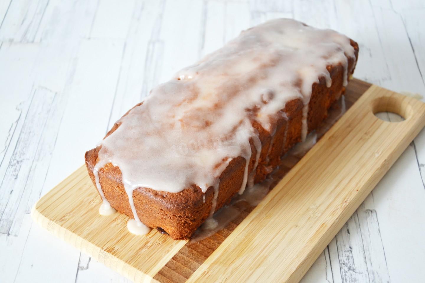 Яблочный кекс вынуть из формы, дать ему немного остыть и полить глазурью.