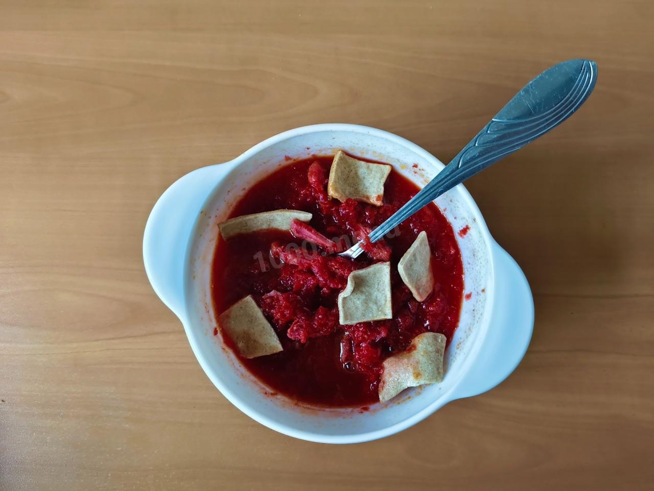 свекольник со свининой и сухариками