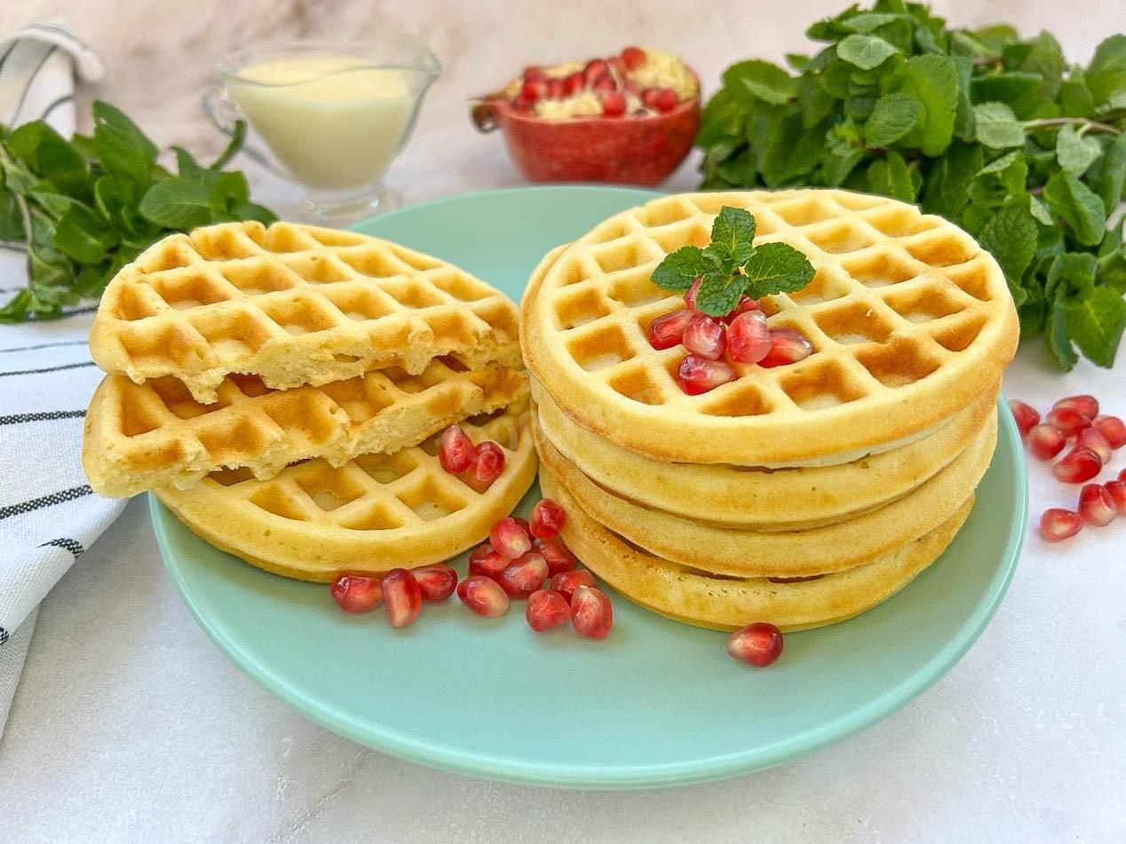 Готовые вафли выложите на тарелку и подайте к столу. Можете украсить их свежими ягодами, дополнить вареньем, джемом или взбитыми сливками. Такие вафли станут отличным дополнением к завтраку или вкусным перекусом. Приятного аппетита!