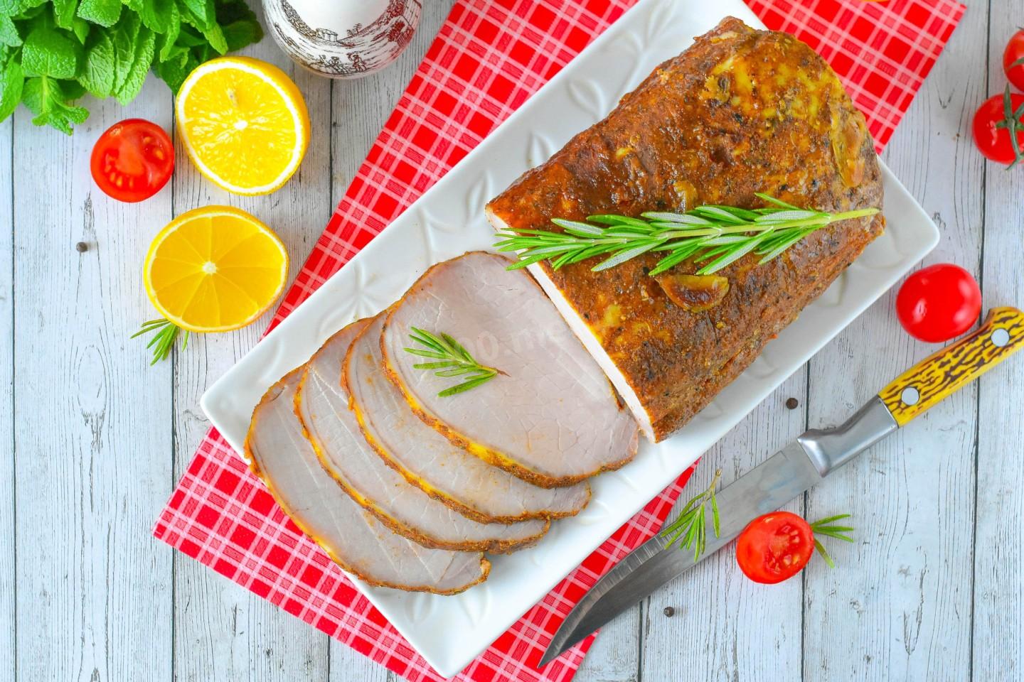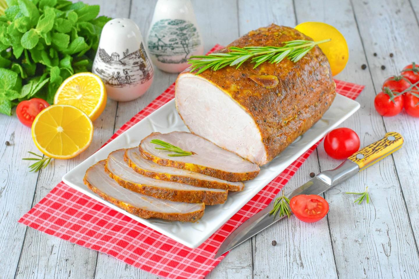 Свиной карбонад: на вырезку, корейку без кости, окорок или филе индейки/курицы/говядины (время приготовления будет другим).
