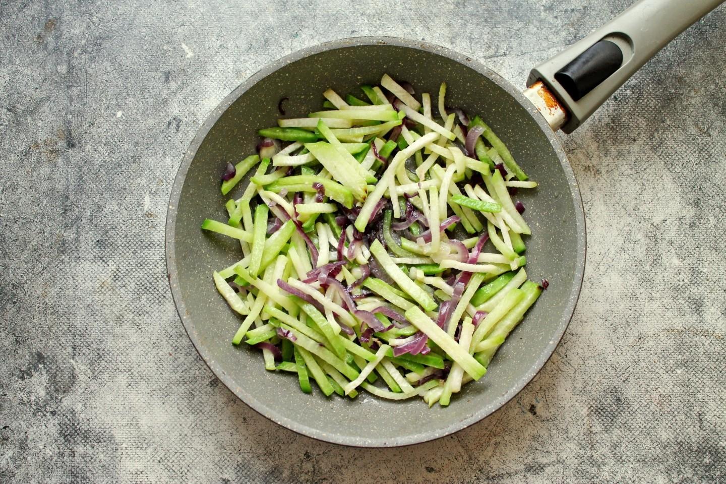 Шаг 4. Как обжарить редьку с луком и зачем их остужать?