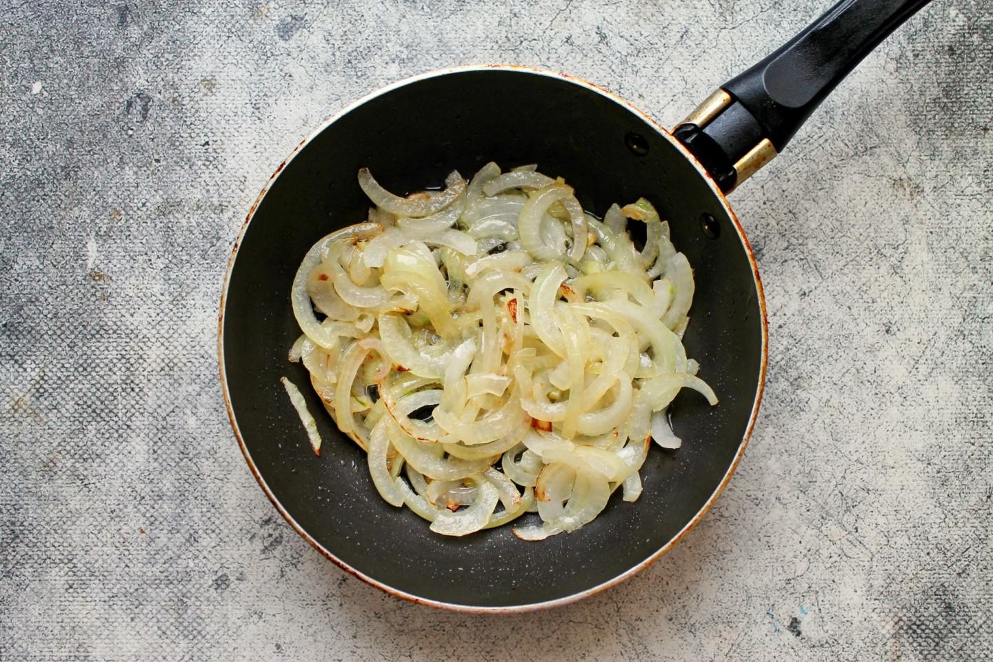 Лук жарите на среднем огне до прозрачности и легкой золотистости. Не допускайте появления темно-коричневых поджаренных краев — они дадут горечь.