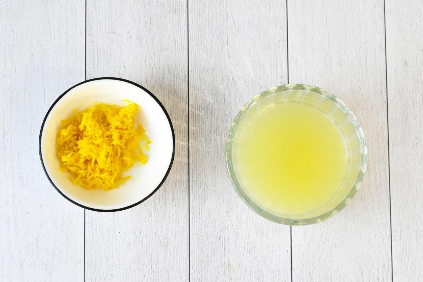 Лимон вымойте и обсушите. С помощью терки снимите цедру и выдавите сок.