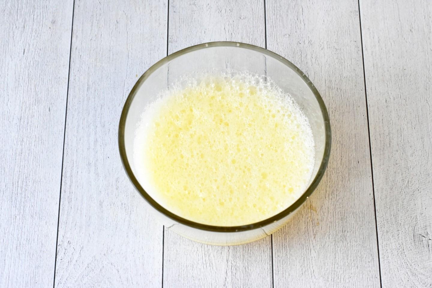 Яйца комнатной температуры соедините с молоком и взбейте до однородности. Подробнее о том, как правильно взбивать яйца читайте в конце рецепта.