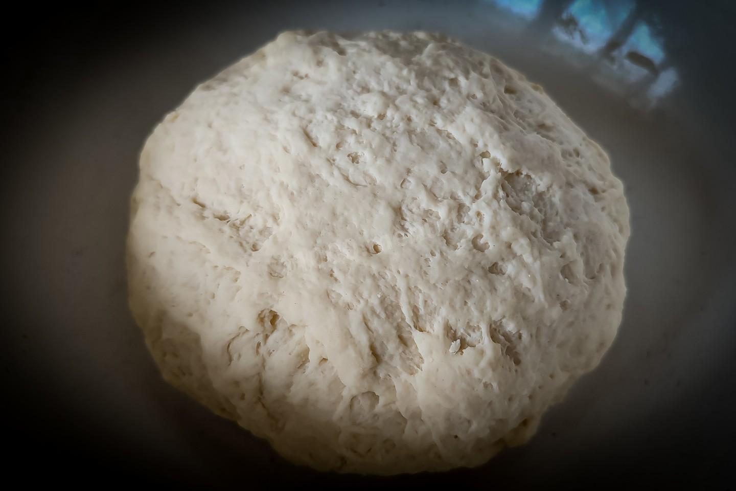 Замешивать тесто нужно не менее 10 минут. И даже после этого тесто будет пористое и будет казаться, что нужно добавить ещё воды, но уверяю Вас - этого делать не надо! Всё что нужно сделать, так это переложить тесто в пакет, выгнать воздух из пакета и положить тесто в холодильник минут на 30.