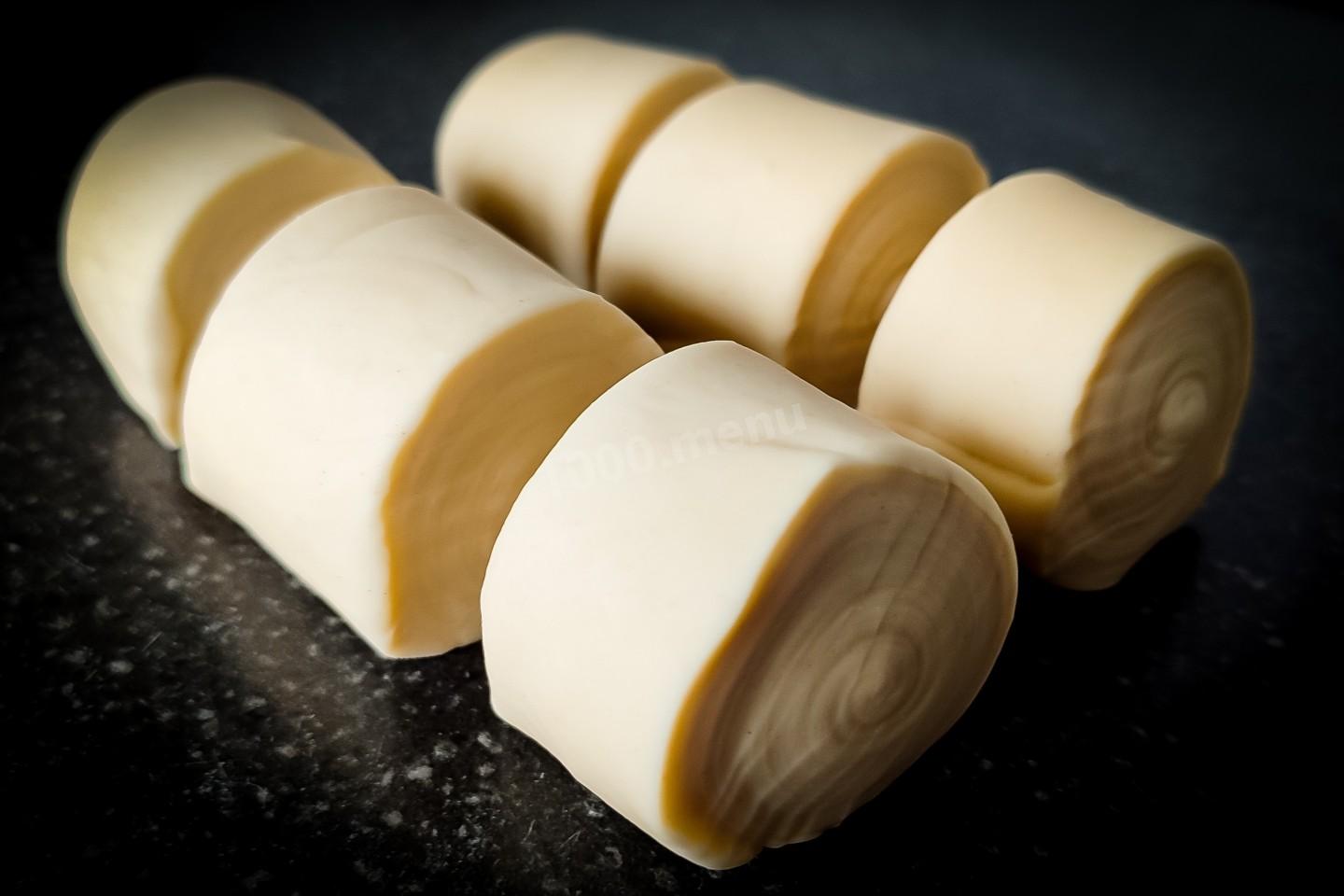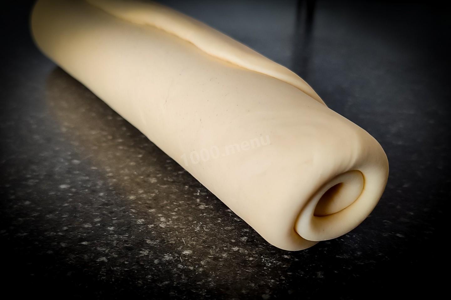 Теперь тесто плотно (!) скатать в рулетик и раскатать в подобие колбаски.