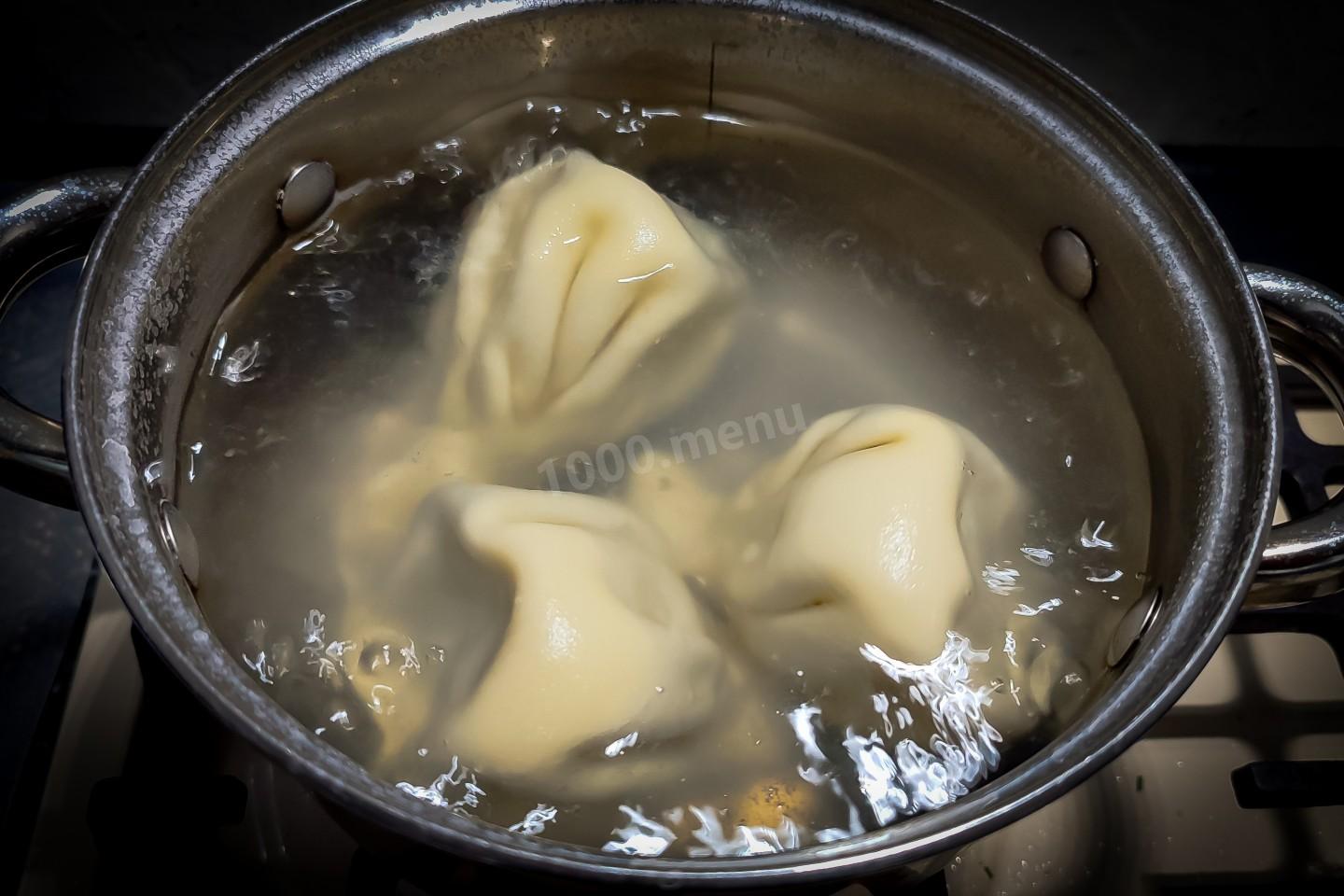 Но в нашем случае мы будем сразу отваривать. Для этого в кастрюлю влить воду, добавить соли по вкусу и закипятить. Как только вода закипит добавить в неё наши хинкали. Сразу много не помещайте в кипяток, 3-4 и достаточно, чтоб в процессе приготовления они не слиплись! После повторного закипания воды, отваривать хинкали 7-10 минут.