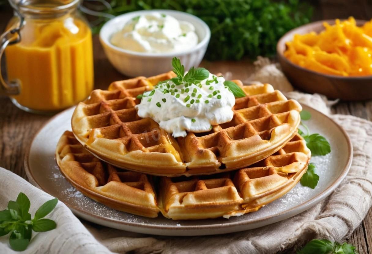 Такие вафли наверняка понравится любителям необычных сочетаний и сытных завтраков. Творог и сыр придают вафлям насыщенный вкус и нежную текстуру, идеально подходящую для утреннего перекуса. Дополните их свежими или запеченными овощами и сметаной - быстрый сытный завтрак готов!