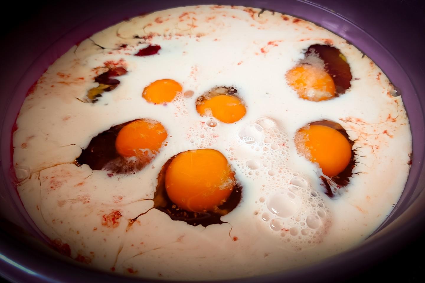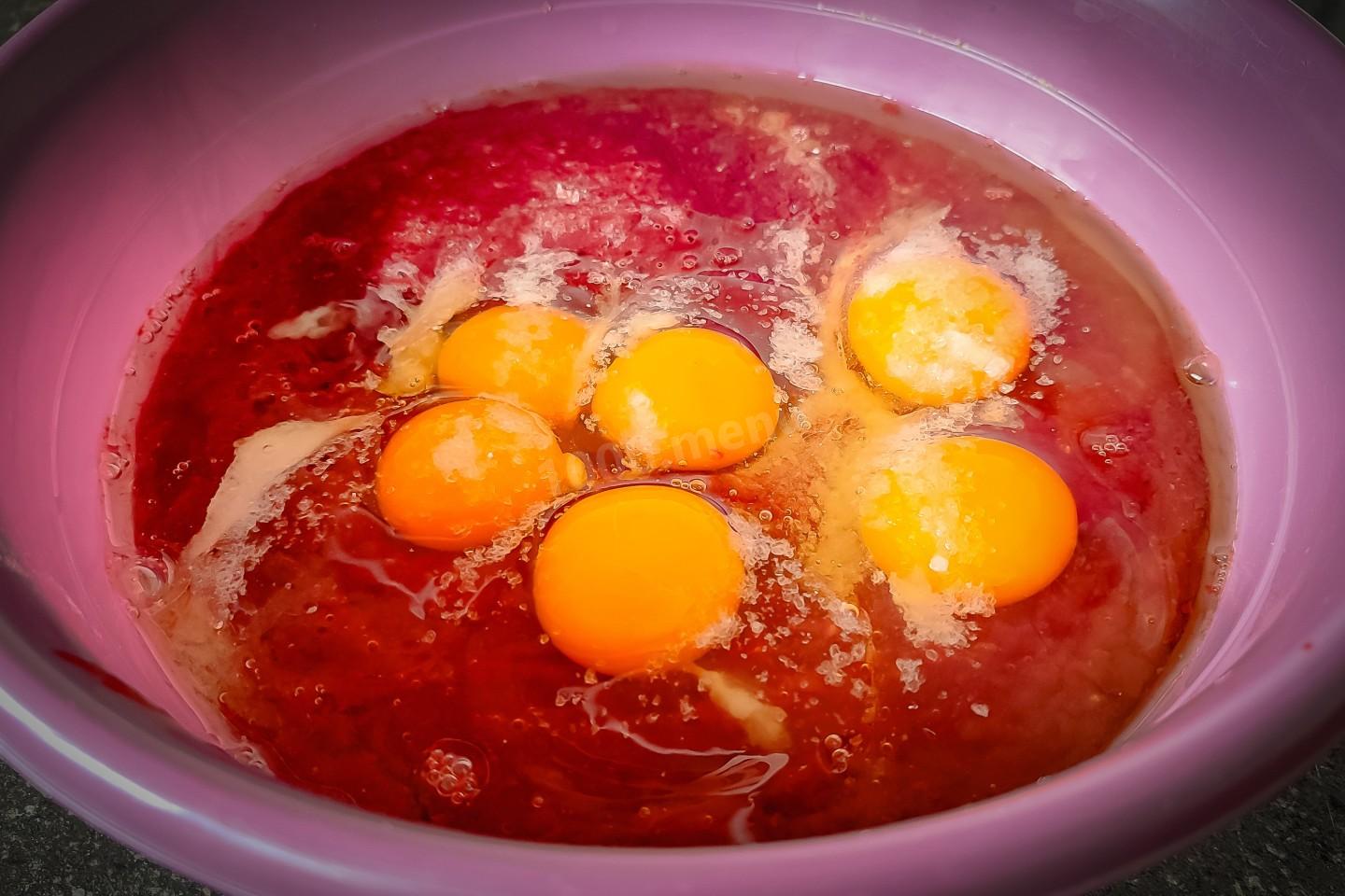 Теперь добавить в печень специи, соль и яйца.
