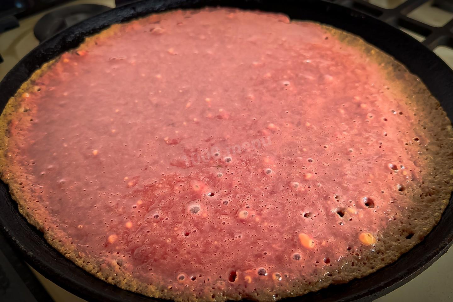 Когда жидкость выпарится, то блинчик перевернуть и обжарить со второй стороны ещё 1 минутку.