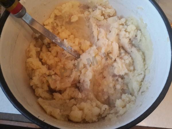 Разминаем картофель в пюре.