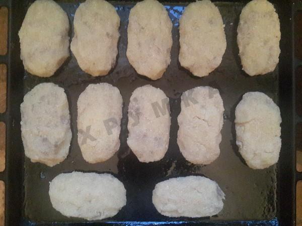 Лепим продолговатые котлетки, обваливаем в панировочных сухарях, выкладываем на смазанный растительным маслом противень и ставим в разогретую духовку на 20-25 минут на 200 градусов и готовим до золотистой корочки.