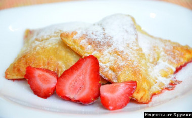 Сегодня утром так захотелось чего то вкусненького и желательно быстренького) вспомнила ваш рецептик, в морозилке всегда на всякий случай есть готовое тесто, вот как раз и пригодилось)так как вишни не оказалось, приготовила с клубникой и яблочным вареньем