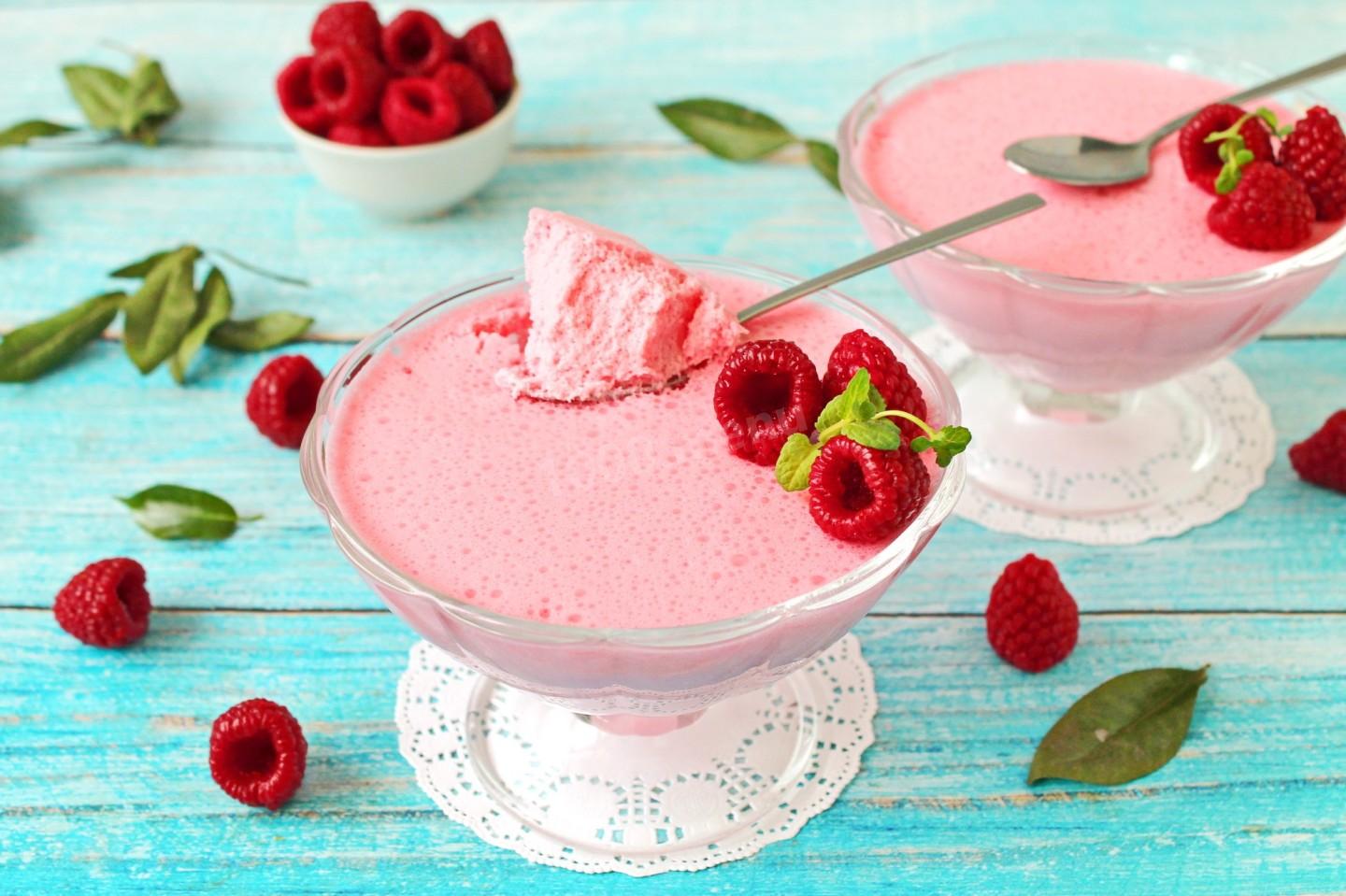 Украсьте десерт свежими ягодами, листиками мяты, тертым шоколадом или ореховой крошкой. Можно сделать слоеный десерт, чередуя воздушную массу с кусочками печенья или фруктов. Для праздника застывший десерт можно вынуть из силиконовой формы на тарелку и полить ягодным соусом. Приятного аппетита!