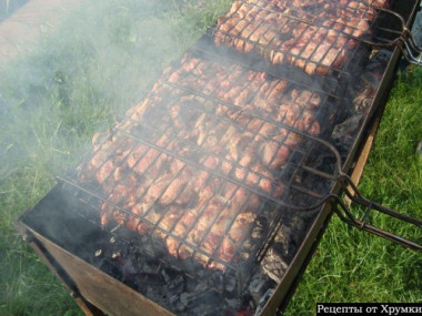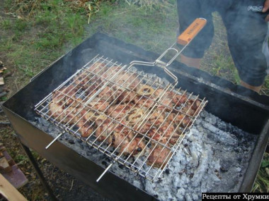 Ира, мы начинали вообще с двух кирпичей, потом у нас появился маленький, как у Вас, а вот только недавно приобрели этот.Конечно удобно, сразу 2 решетки помещаются, можно сразу и мясо и рыбу готовить, теперь планируем сделать стационарный с вытяжкой под навесом, правда когда исполним не ясно...