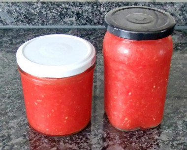 У меня, к сожалению, не возможности выращивать помидорчики(( а в магазинах они не вкусные, одно только название - помидоры! Поэтому я готовлю аджику из томатов в собственном соку . Просто измельчаю их блендером и затем уже добавляю остальные ингредиенты. Очень вкусно получается.