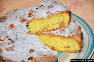 Готовый пирог оставляем ненадолго остыть в форме, затем достаем и посыпаем сахарной пудрой.